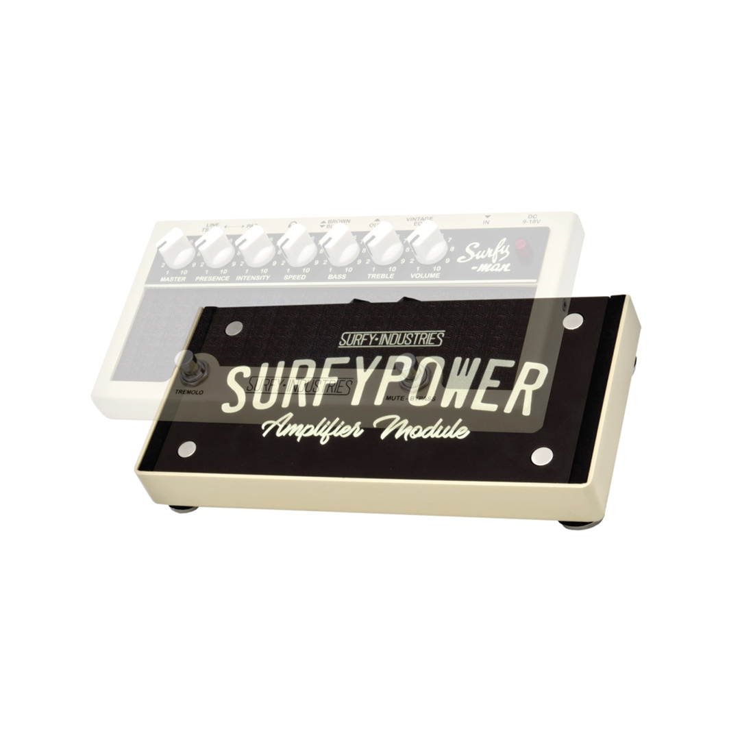 The launch of the SurfyMan has been a game changer for many musicians around the world: a preamp conceived to put in a box the magic of the Fender® Brownface sound, replicating its compression and fat character, bringing a fuller, glorious sound to any modern amplifier. This also allows the player to get more out of our SurfyBear spring reverb units by naturally extending the decay of their effect.